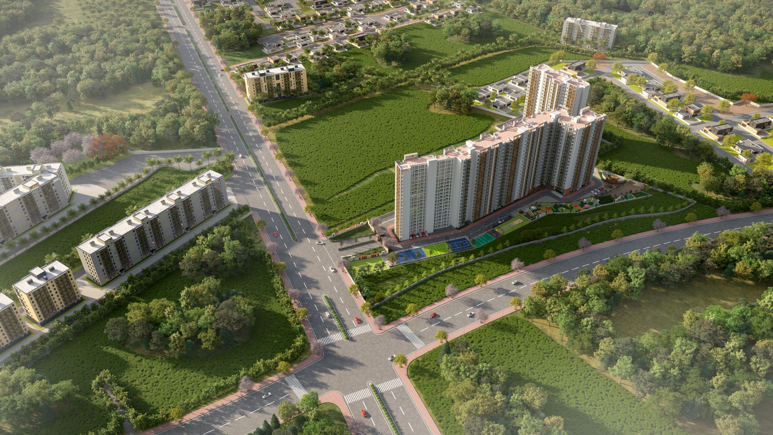 Set across 8 acres in Doddahullur, Bengaluru, this well‑planned community presents 1, 2, and 3 BHK homes tailored to meet the dreams of first-time homeowners and young families.